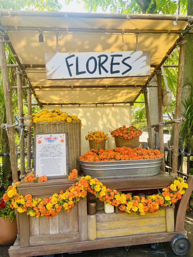メキシコの死者の日のお祭りがテーマになっていて、カラベラ(ガイコツ)やカラフルなパペル・ピカド(紙細工)、オレンジ色のマリーゴールドなどで華やかに飾られていました。