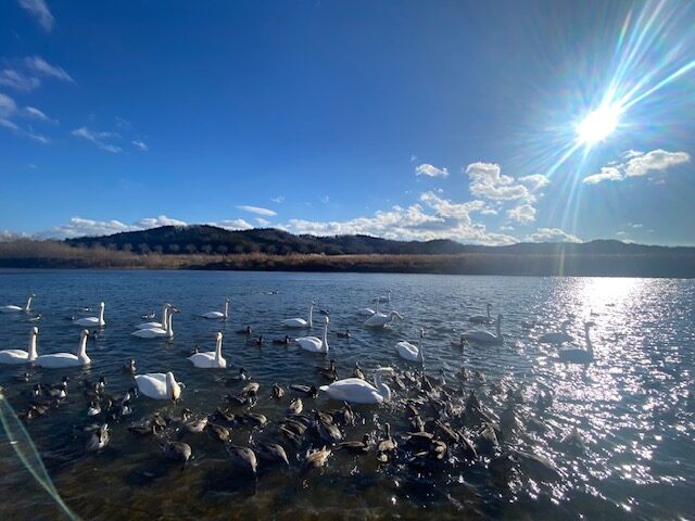 近くにこんなに白鳥が集まるところはあまり見る機会がなく、少し感動しました